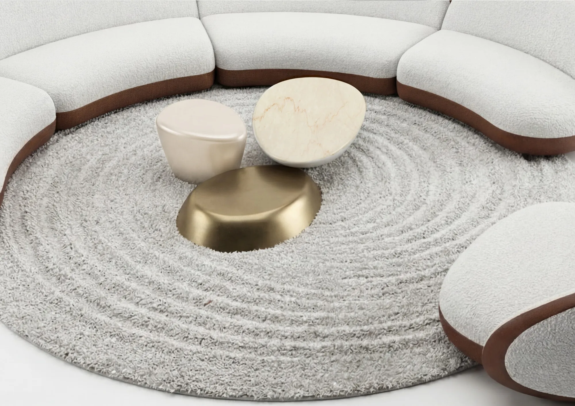 The Lūna Rug is a luxurious statement piece that captures the quiet allure of moonlight through soft textures and artfully layered tones.